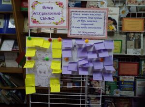 В Клецкой районной центральной библиотеке состоялось заседание клуба «Ровесник» «Искусство жить в семье. Семейные традиции и ценности». Специалист ГУО «Клецкий социально-педагогический центр» Самохвал Л.А. рассказала ребятам о том, как правильно распределять роли в семье, как важно уметь слышать друг друга. Большой интерес у ребят вызвало творческое задание, в котором нужно было мальчикам создать образ идеальной жены, а девочкам – образ идеального мужа. Мероприятие получилось познавательным и интересным.