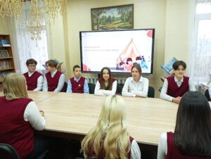 На встречу с учениками 9 класса гимназии г. Клецка сотрудниками библиотеки были приглашены благочинный Клецкого церковного округа отец Андрей Евшель и начальник отдела ЗАГС Клецкого райисполкома Ольга Евгеньевна Рудко. В ходе мероприятия с учащимися была проведена беседа о ценностях и традициях семьи, ребята рассуждали о том, какие традиции существуют в их семье, какие семейные ценности они считают самыми главными для счастливой и крепкой семьи, также поговорили о том, как важно знать историю своей семьи, своих предков. В завершении мероприятия учащиеся сделали вывод, что такие ценности как уважение, любовь, взаимопонимание, связь поколений, преданность, трудолюбие, верность, доверие и забота – и есть фундамент крепкой семьи.